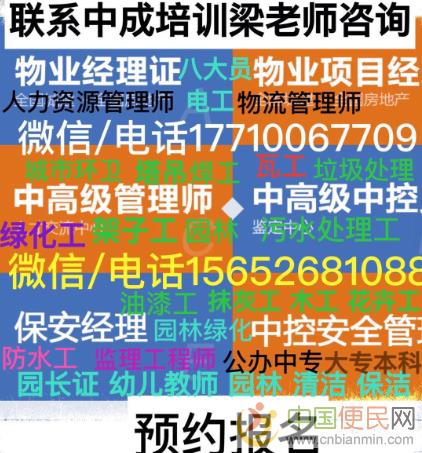 全国统一报名电话微信号131-4656-7934/15652681088,报名热线177-1006-7709中成培训梁老师,加微信报名立减学费100-200元团报价更优,中成培训工程师资格证物业管理证消防证保安证火热报名优惠中,